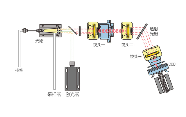激光拉曼技術(shù)是基于氣體拉曼散射的光譜類(lèi)氣體分析技術(shù),利用高光束質(zhì)量的激光器發(fā)出特定波長(zhǎng)的激光。經(jīng)過(guò)消色差透鏡在氣體室中聚焦,在焦點(diǎn)位置激光和氣體分子相互碰撞產(chǎn)生拉曼散射,不同氣體對(duì)應(yīng)的拉曼散射光波長(zhǎng)不一樣(稱(chēng)為氣體的拉曼特征峰)。拉曼峰的強(qiáng)度和氣體濃度值成正比,通過(guò)光譜分析氣體拉曼特征峰的位置和強(qiáng)度,可實(shí)現(xiàn)多組分同時(shí)測(cè)量。此外,由于拉曼散射光譜的激發(fā)和收集時(shí)間非常短,因此和色譜相比具有更快的響應(yīng)時(shí)間。
