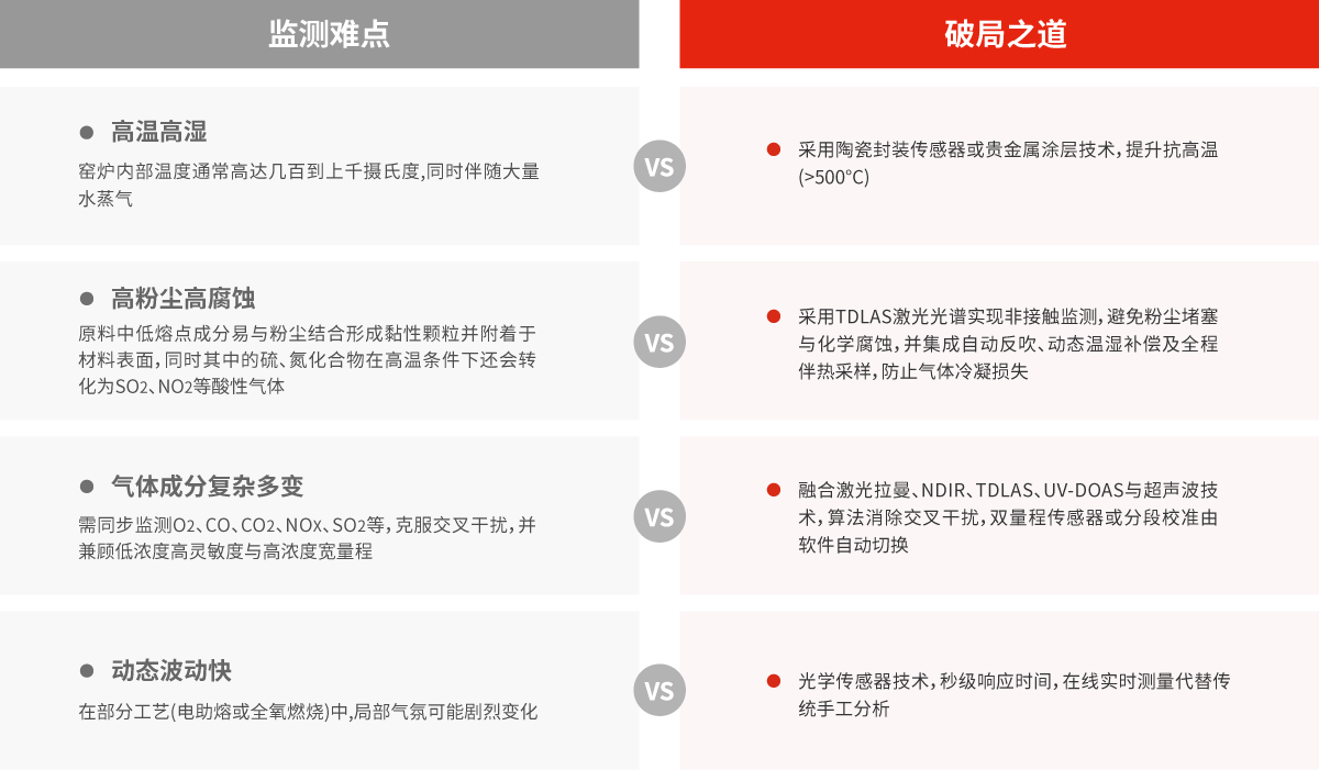面對(duì)工業(yè)窯爐燃燒過程中高溫高濕、高腐蝕、高粉塵及氣體交叉干擾等嚴(yán)峻挑戰(zhàn),四方光電(武漢)儀器有限公司依托自主先進(jìn)技術(shù)與創(chuàng)新方案,一舉突破傳統(tǒng)監(jiān)測(cè)瓶頸,為工業(yè)窯爐提供高效、精準(zhǔn)、可靠的氣體監(jiān)測(cè)破局之道。
